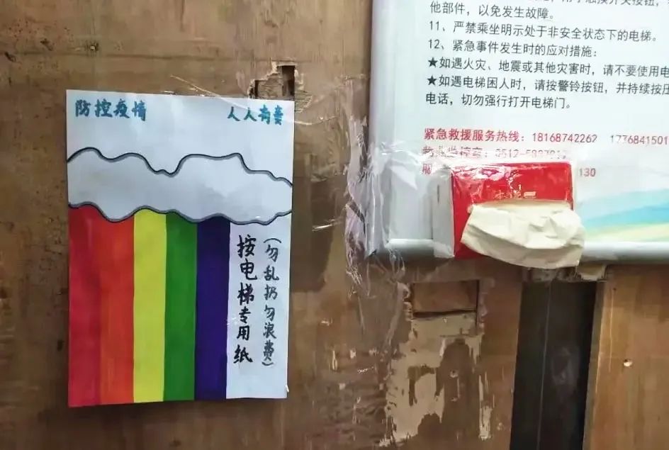 新冠肺炎疫情发生后,为看护家乡,蔡雨辰自动帮忙社区物业粘贴防疫宣扬语、宣扬防疫常识。还在电梯里放上了簇新抽纸,贴上“防护疫情 人人有责”的五颜六色简笔画,提示邻居们留意自我防护。