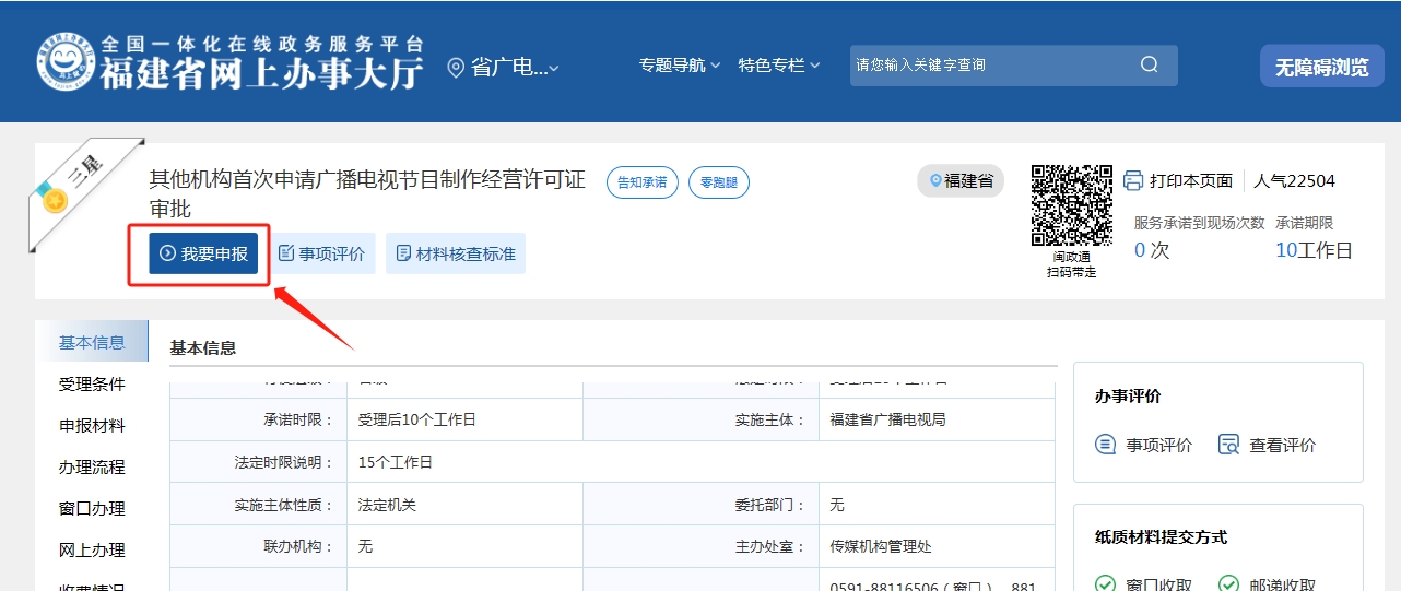 福州市台江区西环南路128号东门福建省播送电视局政务服务中心1号窗口。(联系方式,收件人:窗口作业人员)