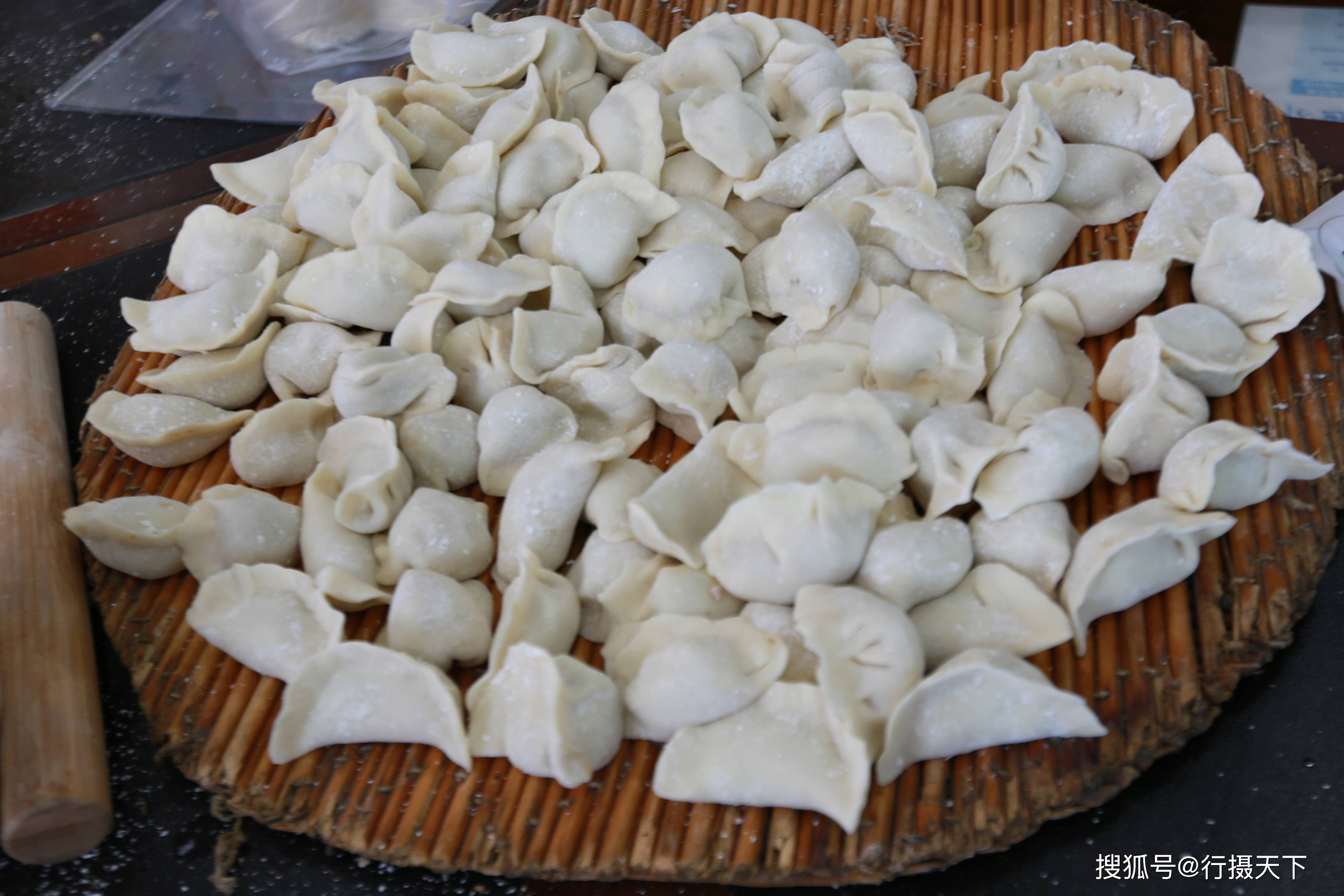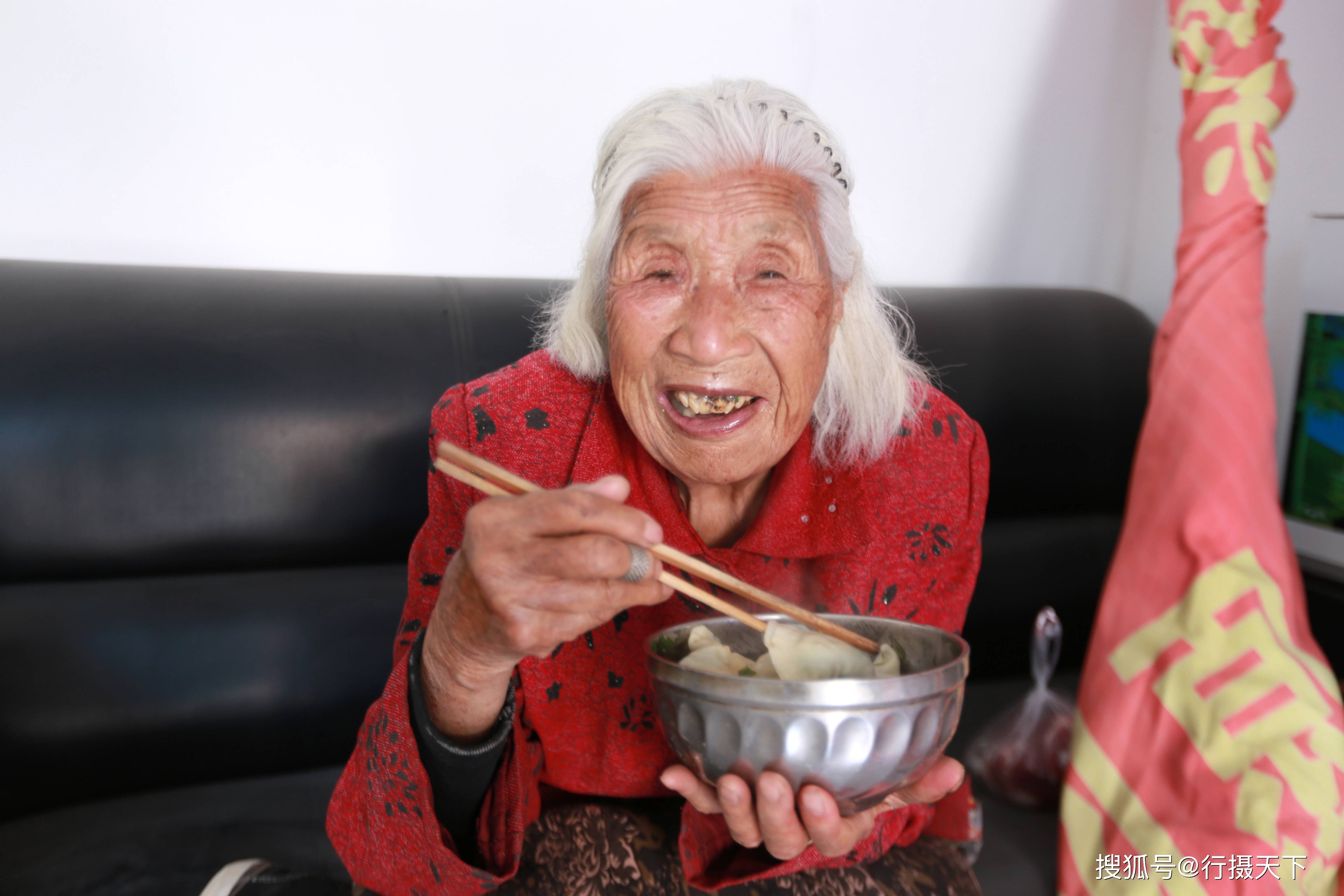 在村委会大院外,74岁的郭二的、70岁的李天顺、80岁的郭文魁三个老汉端着热腾腾、香馥馥的饺子,正在共享白叟节的高兴。