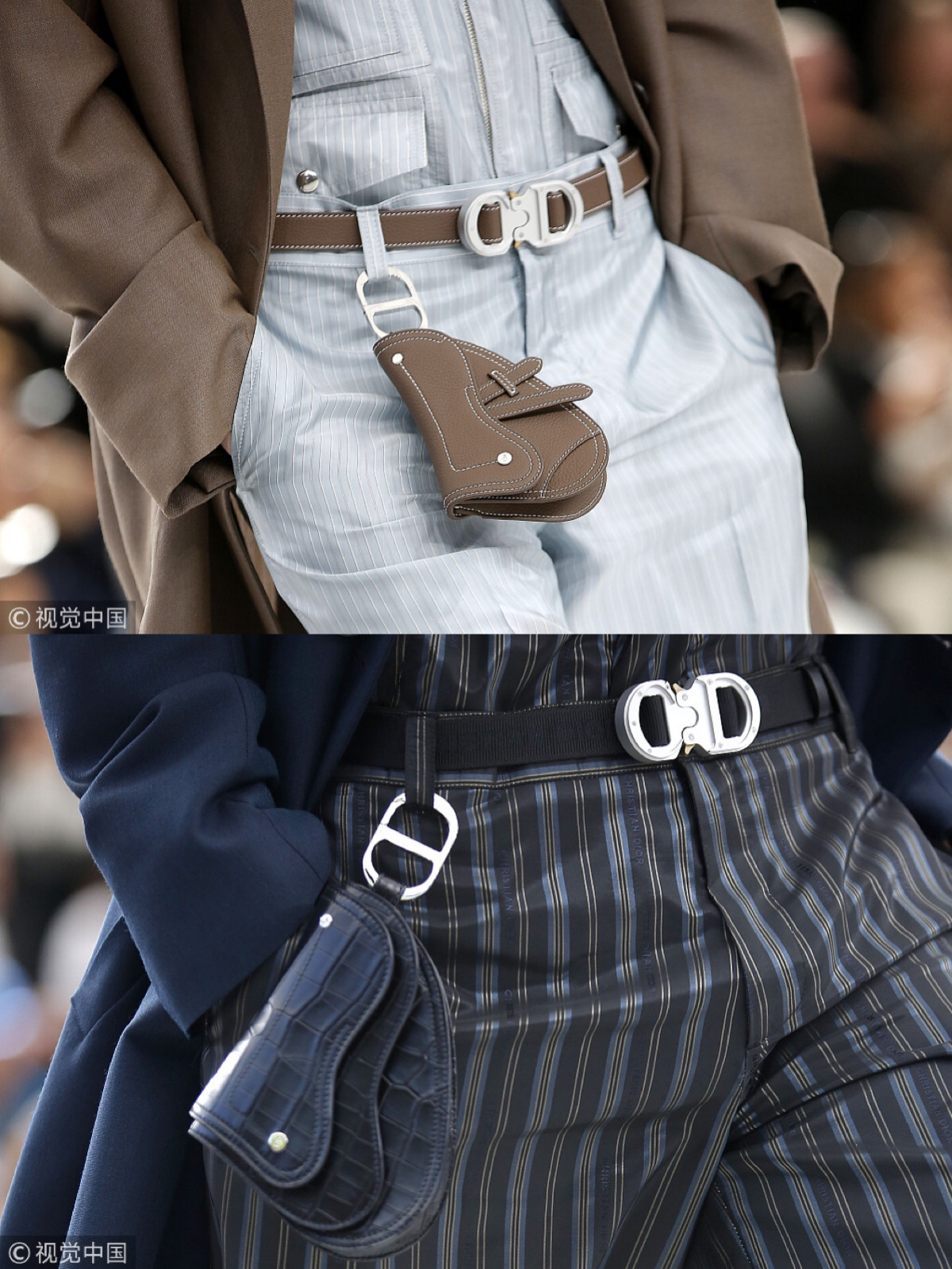 在2019春夏的男装秀场上,还呈现了男生的超“迷你”包身影。上世纪90年代叱咤风云的 Christian Dior Saddle“马鞍包”,微缩到巴掌巨细后,直接拴到了男模们的腰间。