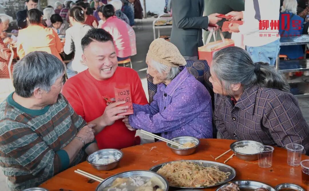 10月25日下午,重阳节前夕,在柳城县凤山镇对河村荡坪屯,乡民张翼飞捐资10万元举行重阳敬老活动,约请全村白叟聚餐,并给他们发红包,其间最大的一个红包为3000元,发给村里一位百岁白叟。