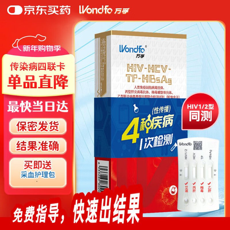 万孚艾滋病梅毒乙肝丙肝 流行症四项检测试纸卡 HIV试纸四联4项四合一
