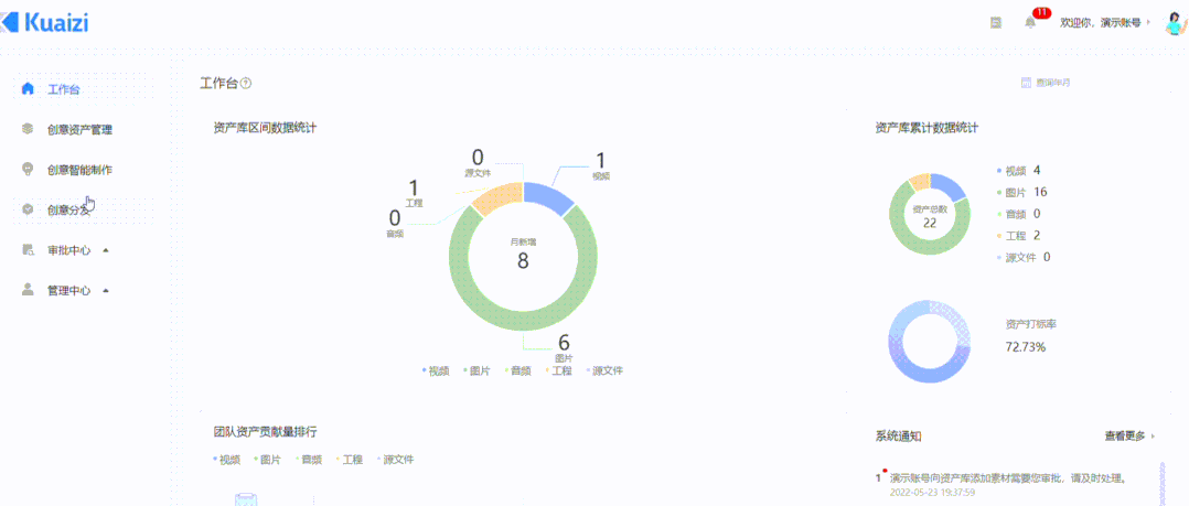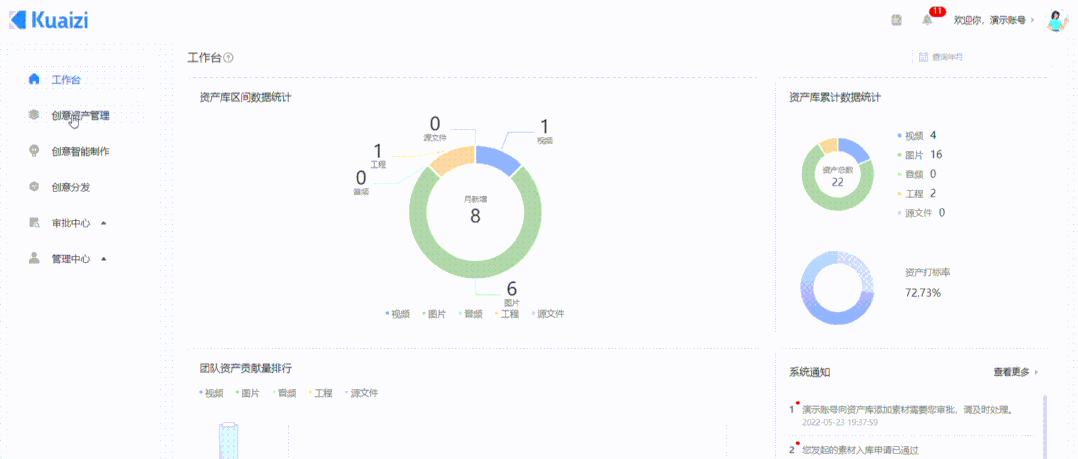 Kuaizi DAM+配备视频和图片智能制作功能,可以在一定程度上完成创意素材极速生产裂变,改变创意内容传统低效的生产方式,标准化创意内容生产工作流,快速、高效且低成本输出内容SOP。