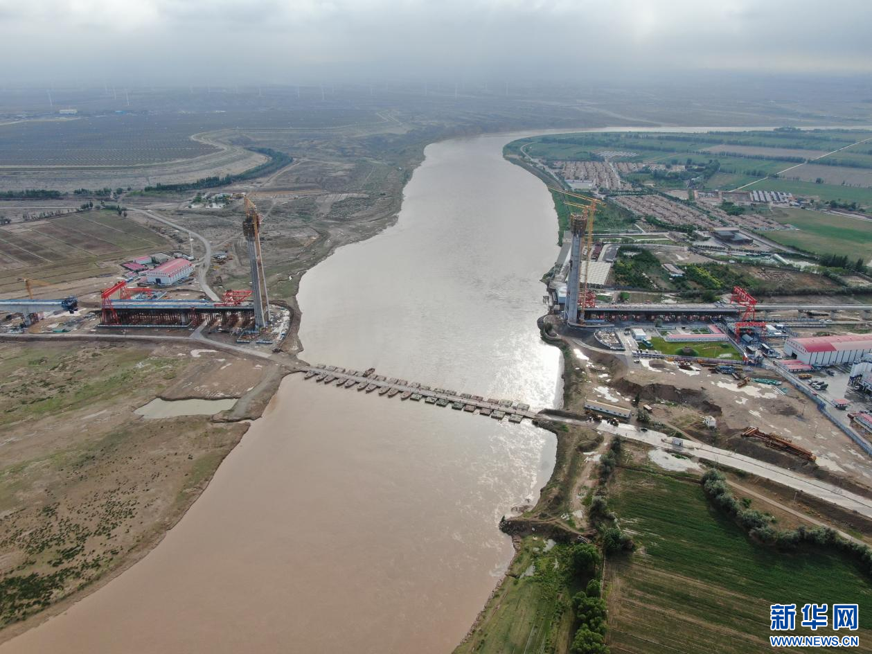 依照施工方案,估计本年9月底包银高铁乌海黄河特大桥完成合龙,2025年6月进行轨迹铺设施工。新华网发(黄建飞 摄)
